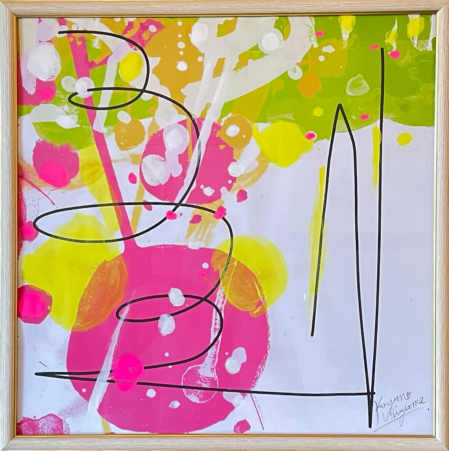 宇宙への感謝をイメージした作品です。30cmx30cmの額に入っています。部屋を明るくする事間違いなしです!